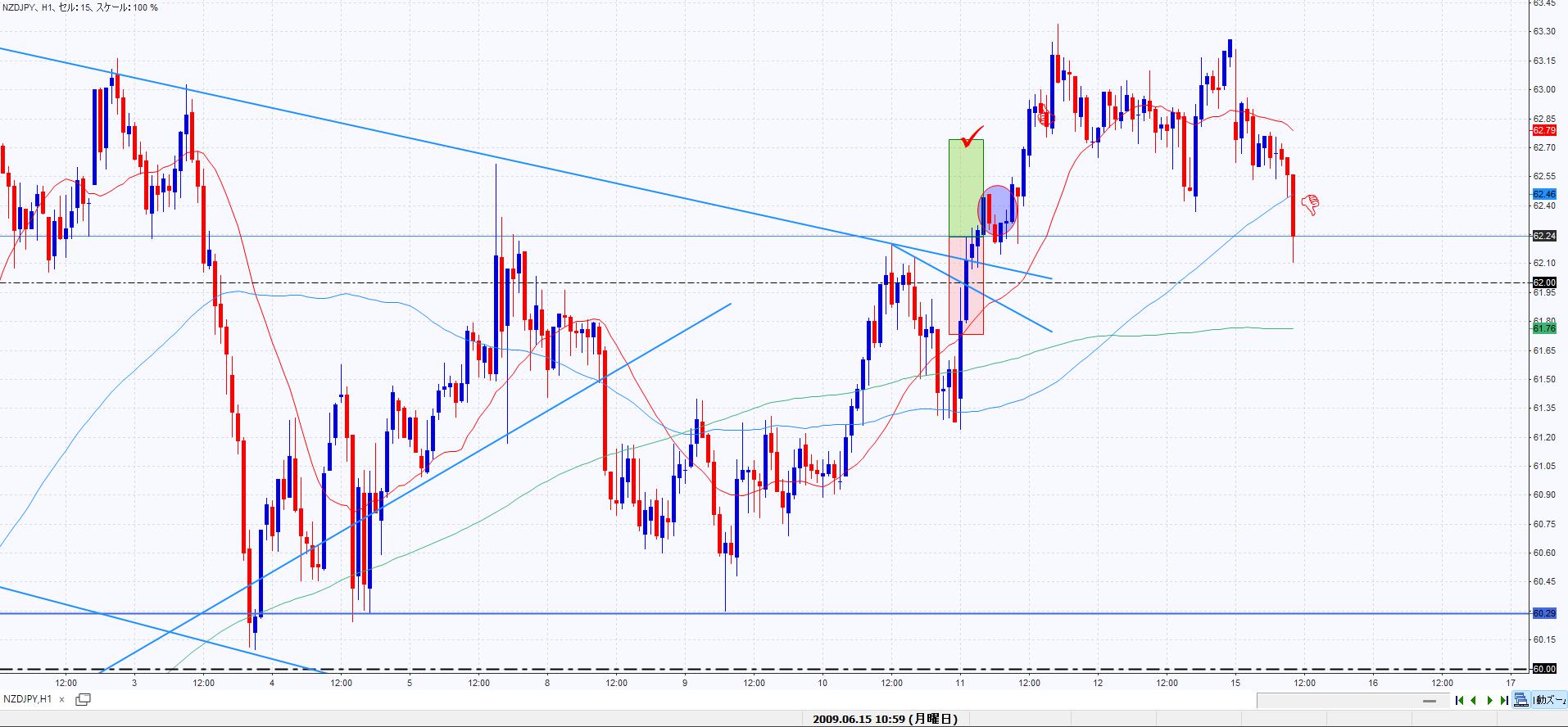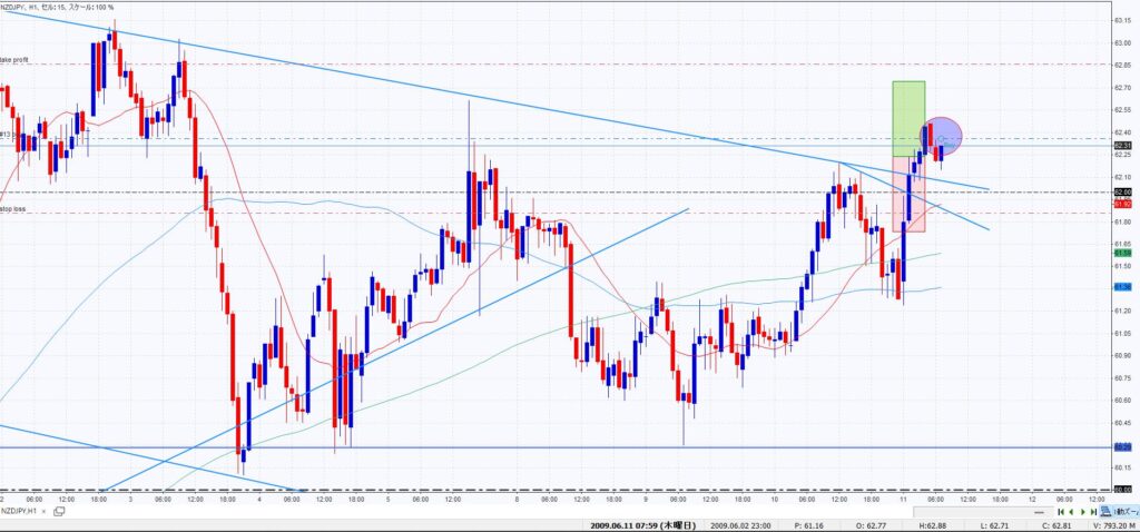 1Hでのリテスト+抱き線(プライスアクション)を根拠に本玉を置いている点はルール通り。
