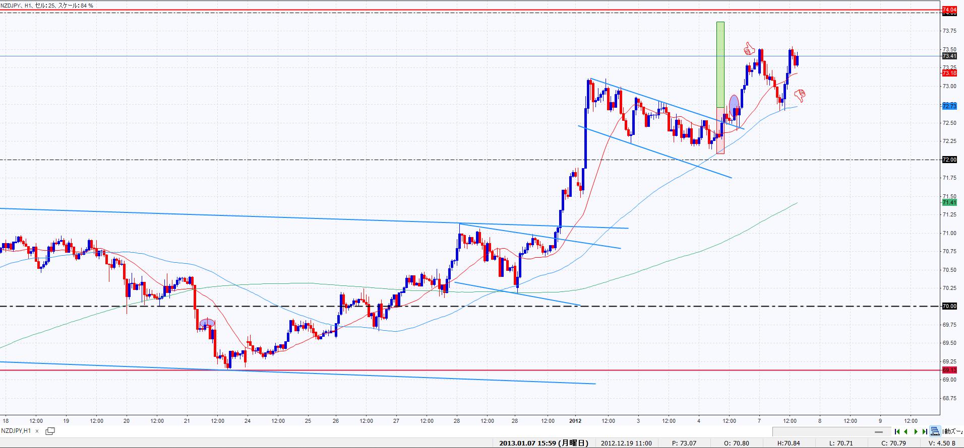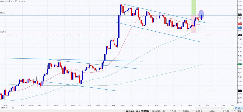 上位足水平線とラウンドナンバー(70円)の扱いも論理的。