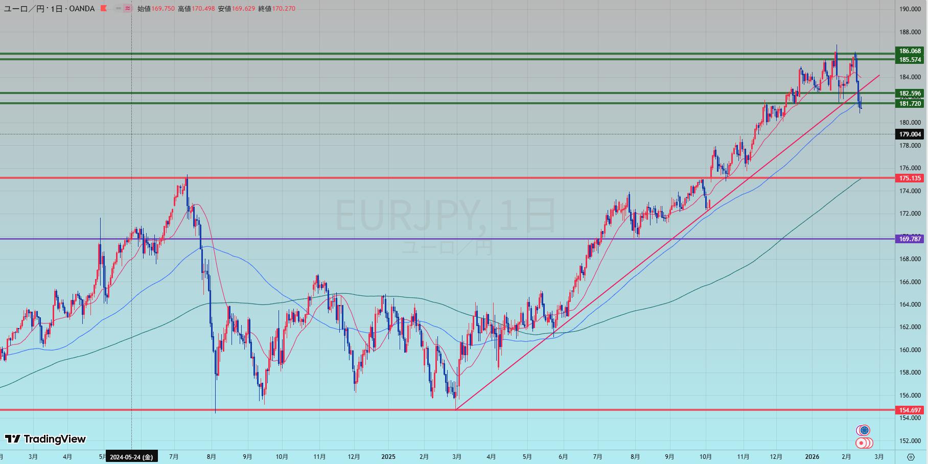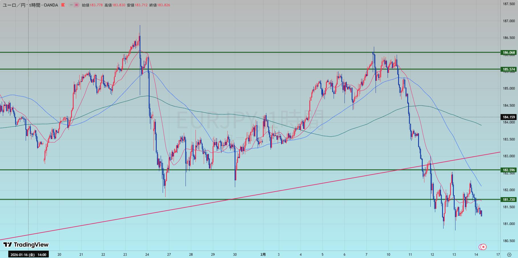 【結論】 現在は「大きな上昇の中の、深い調整」を狙うフェーズです。181.7円〜182.6円付近がレジスタンスとして確立されるかどうかが、ショート戦略の成否を分けます。