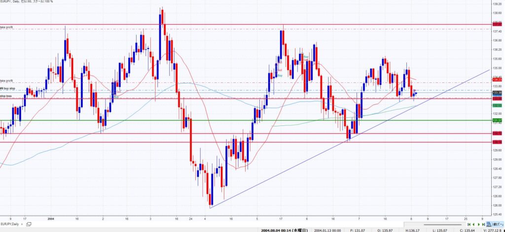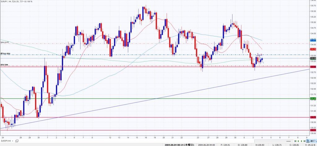 • 良かった点: レジサポ転換(サポレジ転換)後の水平線サポートを正確に捉えている。4.jpgにおける133.00付近の水平線は、過去の抵抗帯が支持帯に変わった明確な節目であり、ここでの反発期待は非常に優位性が高い。