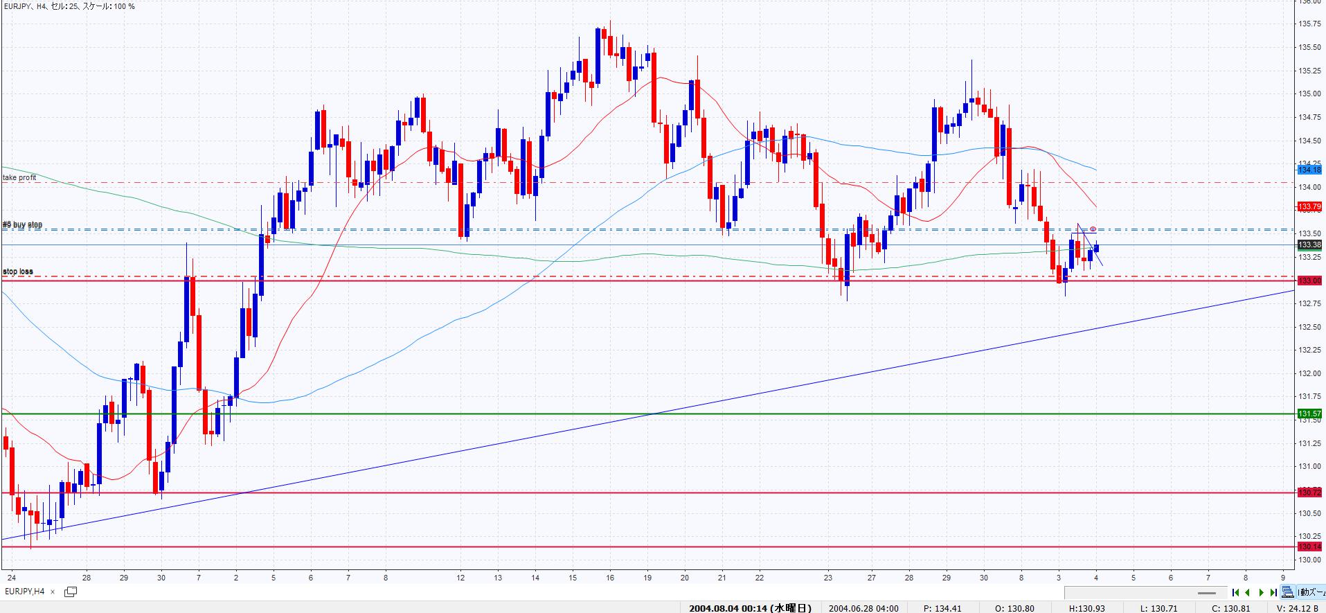 • 良かった点: レジサポ転換(サポレジ転換)後の水平線サポートを正確に捉えている。4.jpgにおける133.00付近の水平線は、過去の抵抗帯が支持帯に変わった明確な節目であり、ここでの反発期待は非常に優位性が高い。