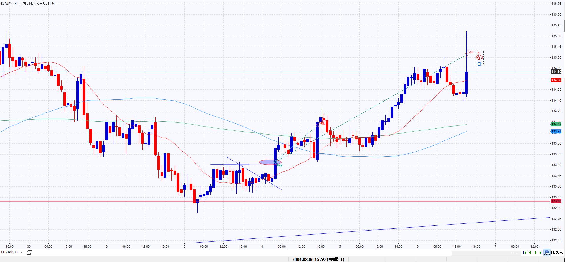 • 悪かった点: 下髭の長いローソク足が頻発しているエリアであり、安易な成行注文を避けた判断は賢明だが、この時点での「下落継続」の可能性に対する警戒心がもう少し記述に欲しい。
