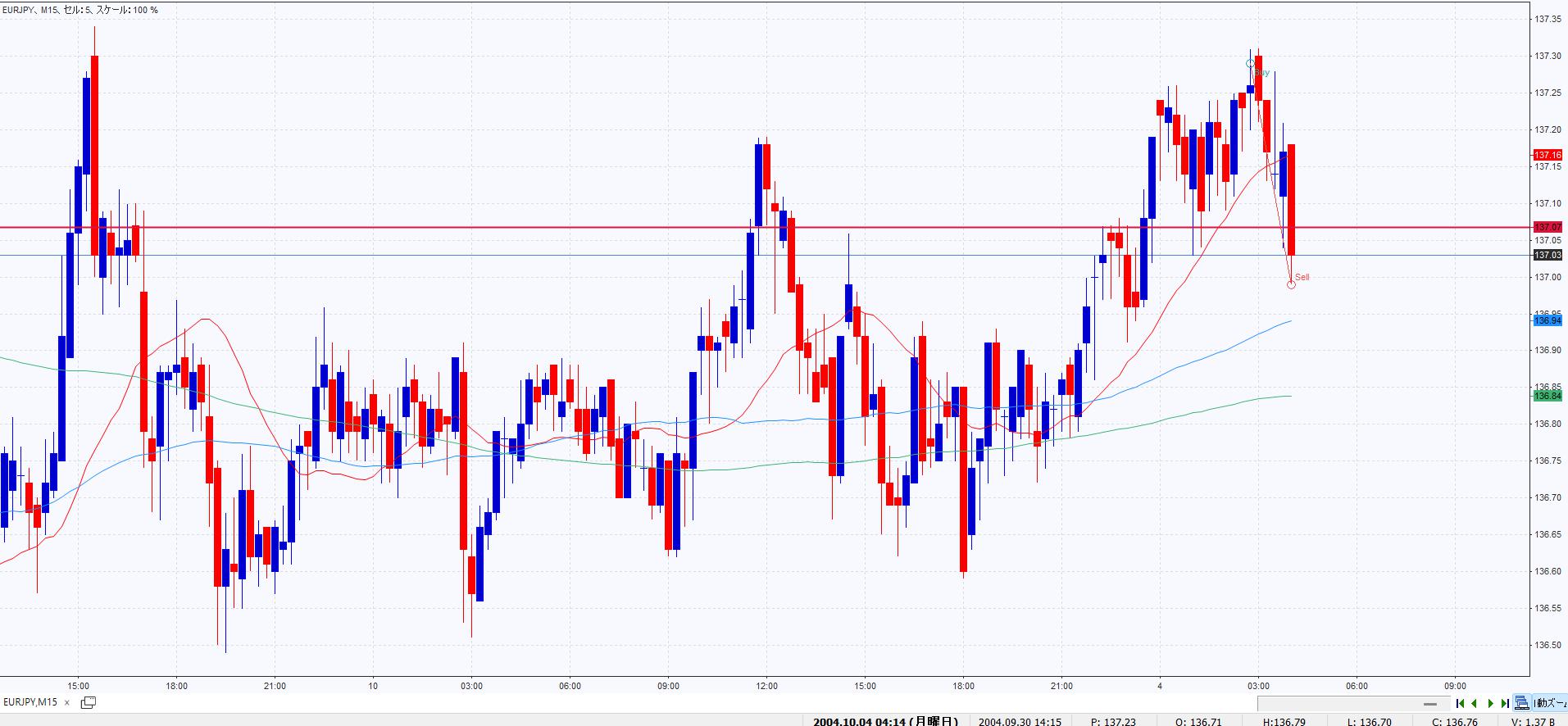 悪かった点: 137.20-30付近で頭を抑えられているクラスタ(揉み合い)が発生しており、上昇エネルギーが減衰している。この位置でのピンバーは「上昇継続」ではなく「上昇停止」のサインとして機能するリスクがあった。