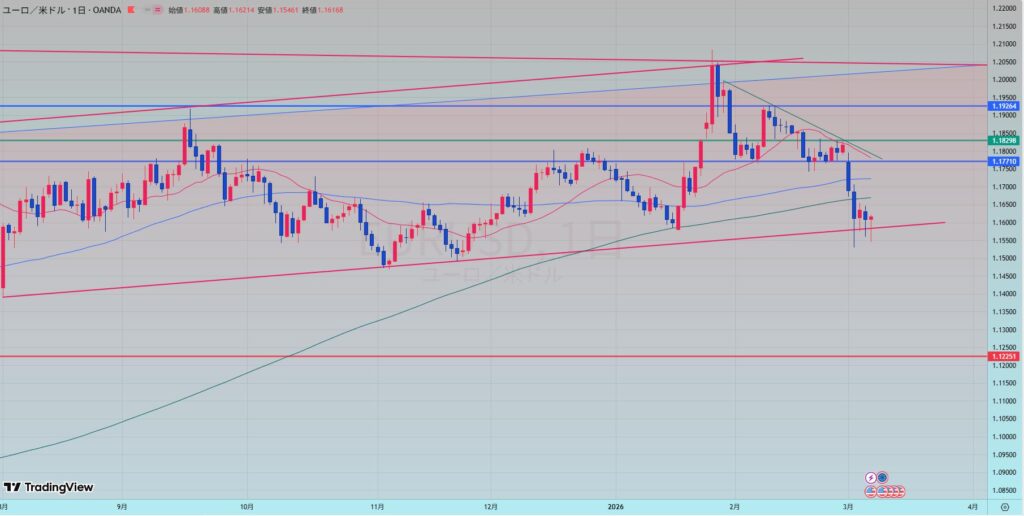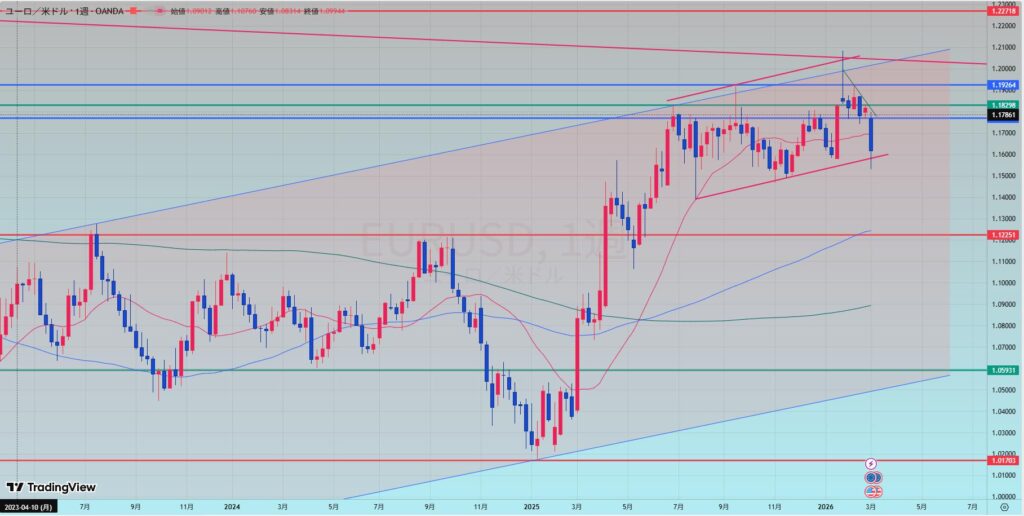 • 批評: 現状は上昇トレンドの中での深い調整局面である。君が指摘する1.122付近は、過去のレジサポ転換点(2025年序盤の節目)と重なり、強力な磁力を持つ。ただし、週足レベルでのMA乖離は「買われすぎの修正」が終わっただけで、ここからさらに掘り下げるには、週足確定でのチャネル割れという明確な事実が必要になる。安易なショートは、巨大な押し目買い勢力に飲み込まれるリスクを孕んでいる。