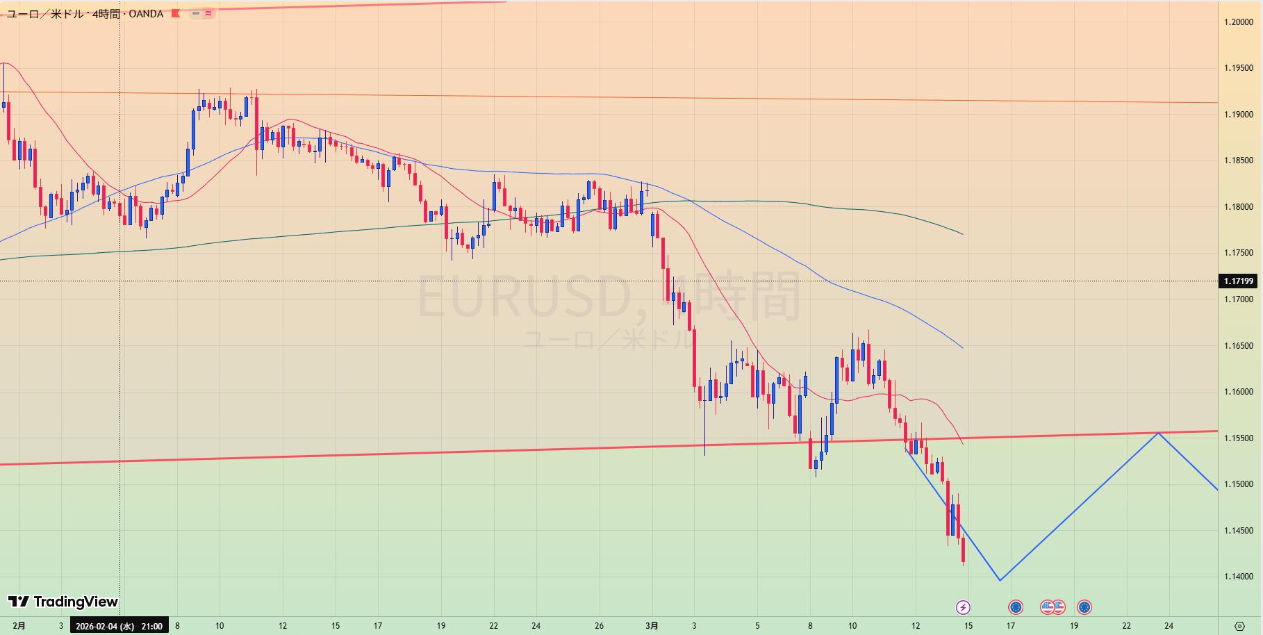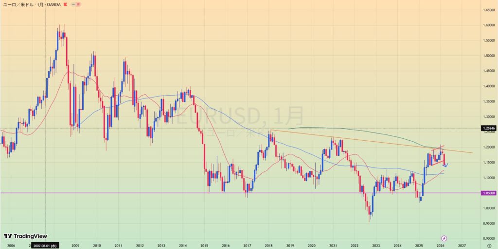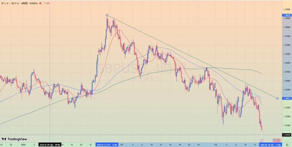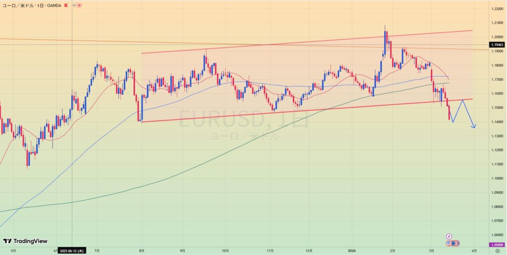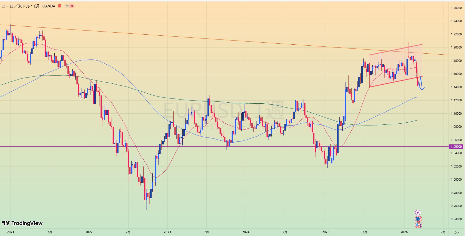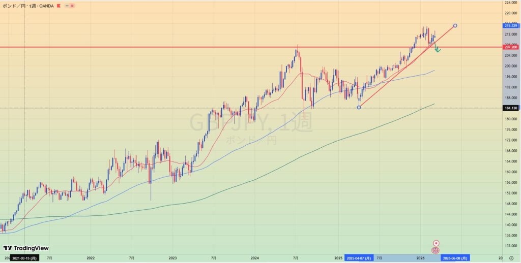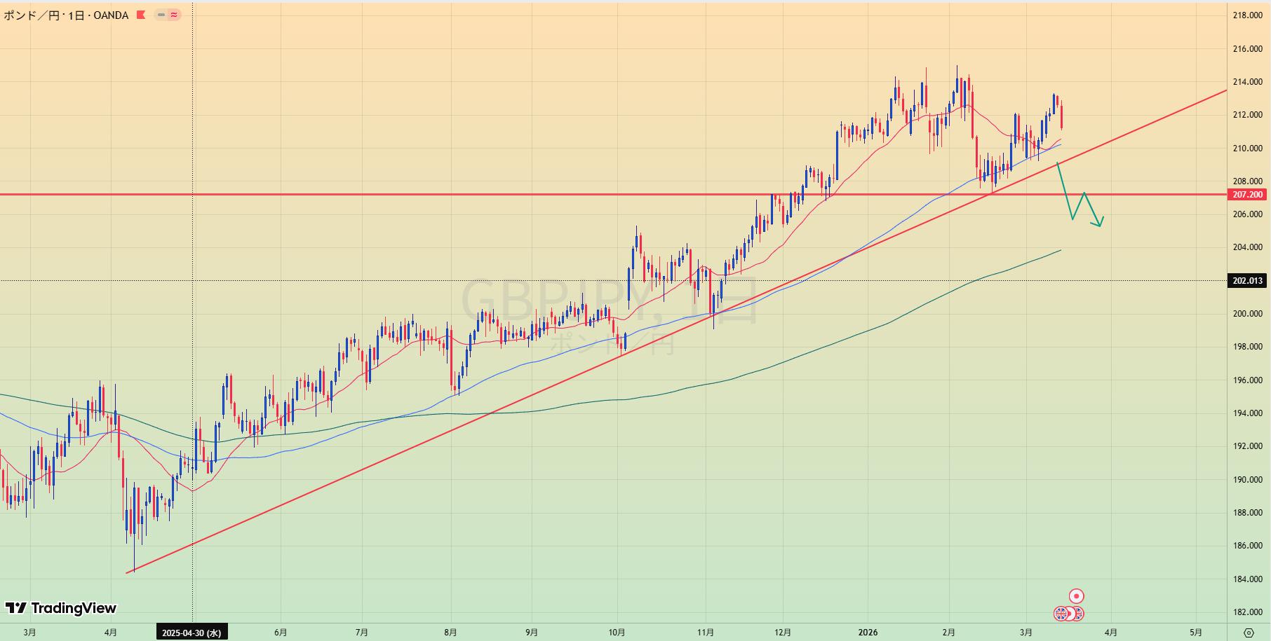 - MA200乖離もあり、緑トレンドライン下抜けなら1.20まで値幅十分でショートもあり得る。
