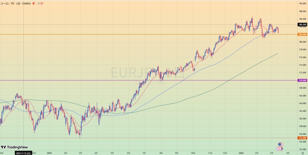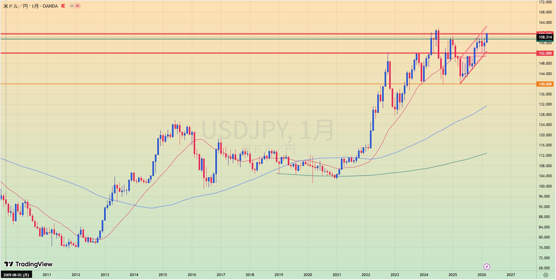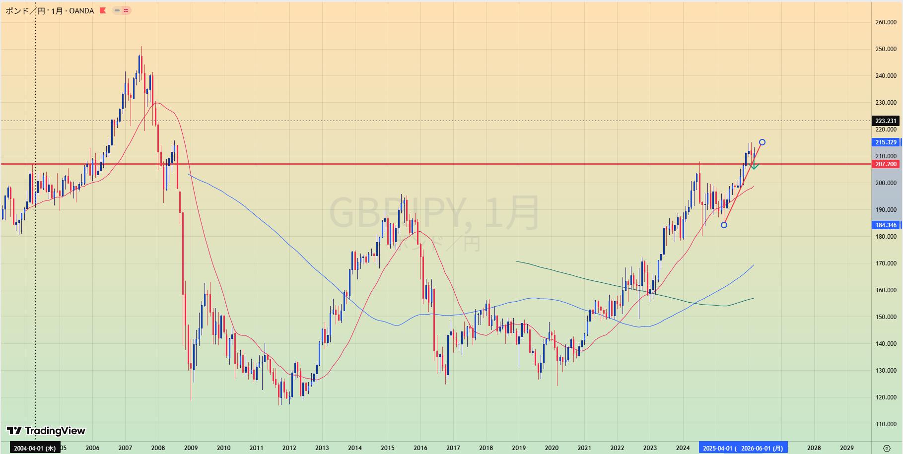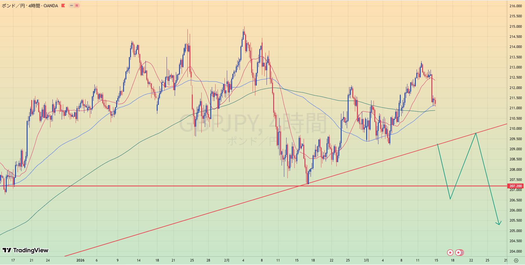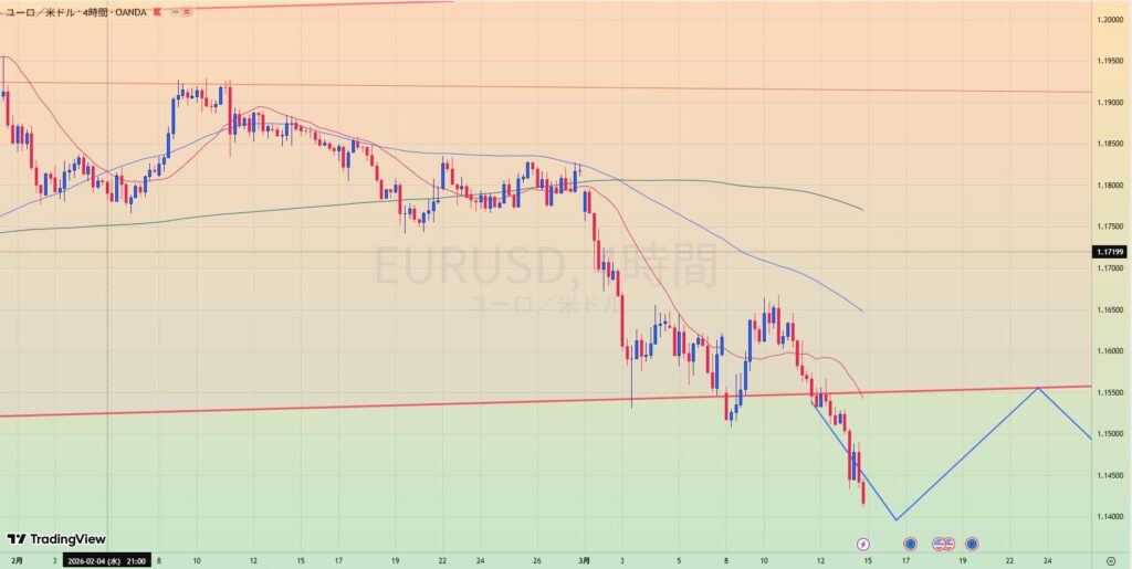 - MA200乖離もあり、緑トレンドライン下抜けなら1.20まで値幅十分でショートもあり得る。