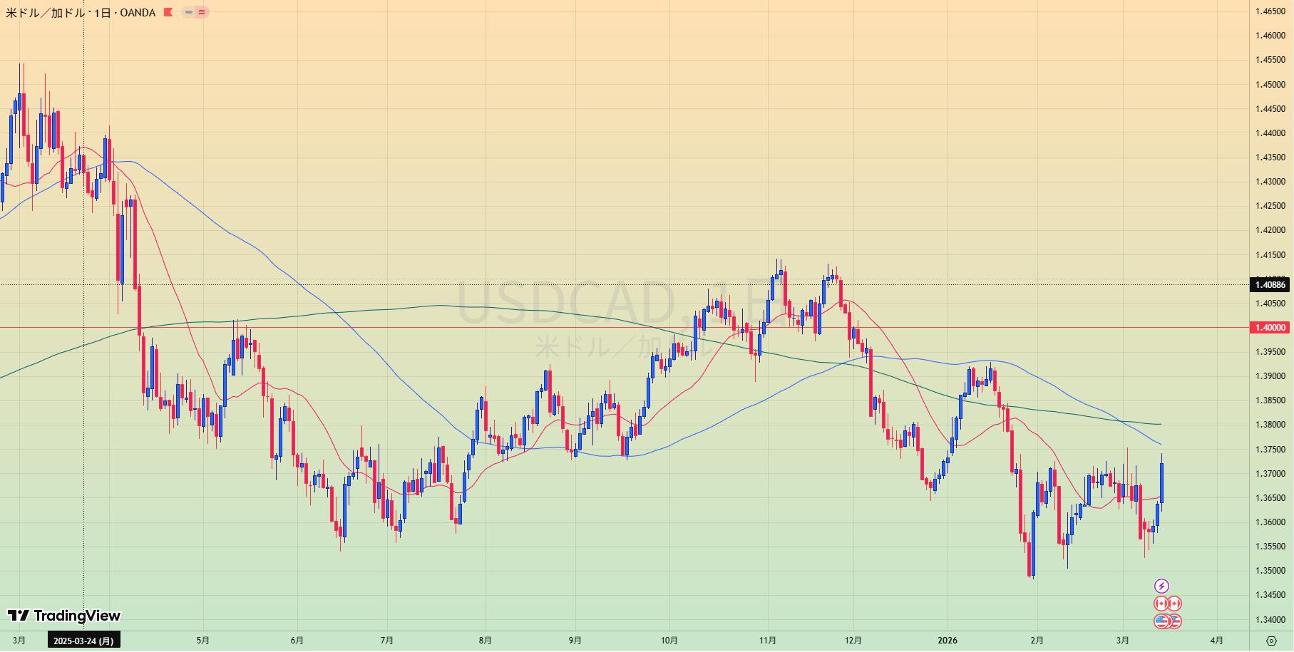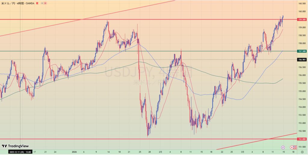 - ロングなら1.42、ショートなら1.30のライン到達で監視
