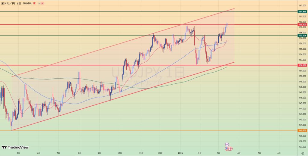 - 162上抜け後ロングだが、それでもMA乖離の調整、または時間調整が必要