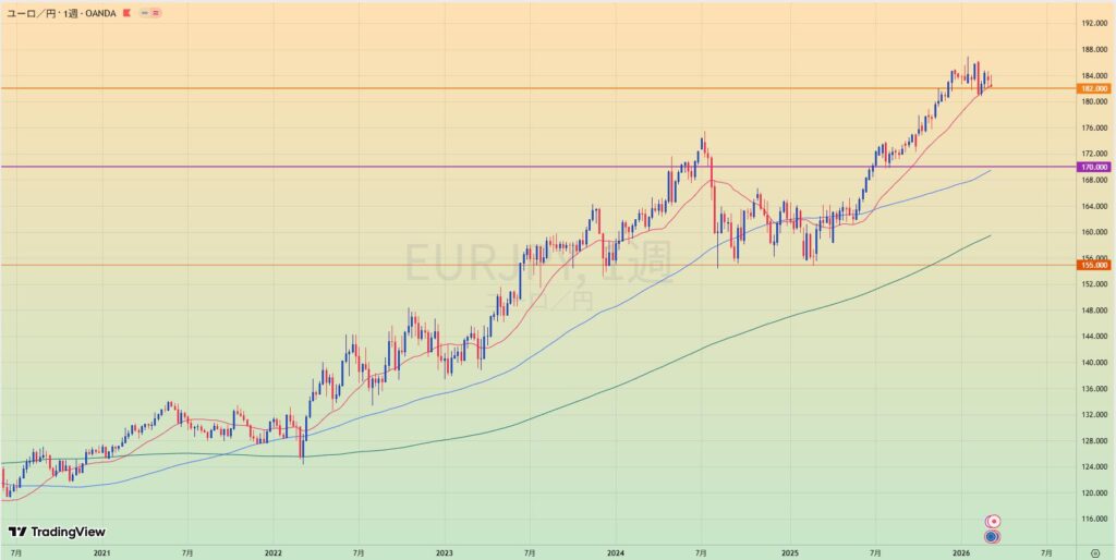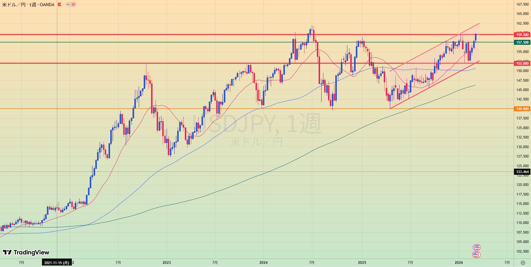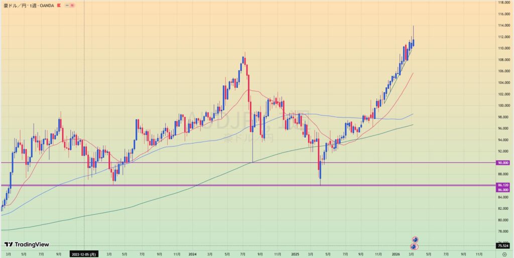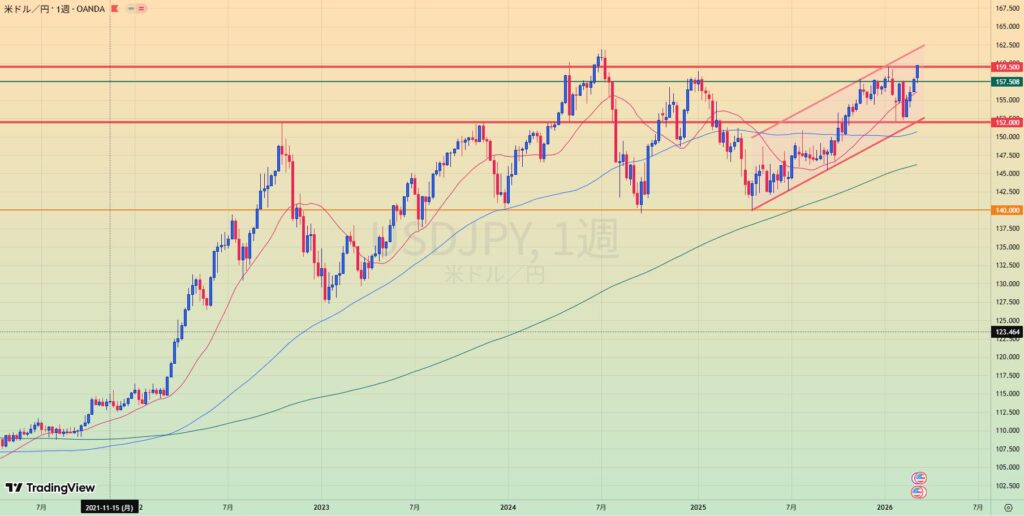 - 週足でもMA乖離大きく手を出しずらい位置まで上がってしまっている。