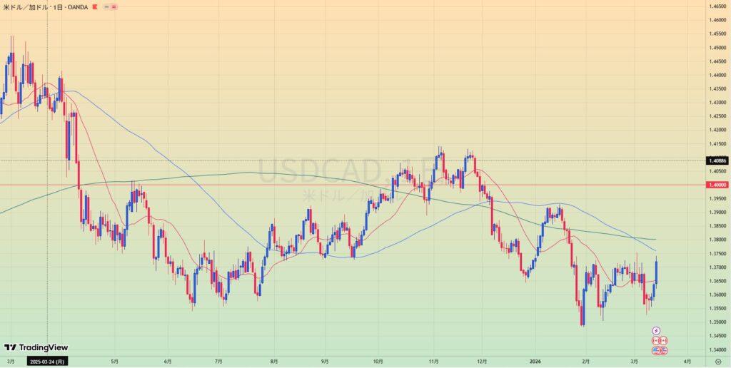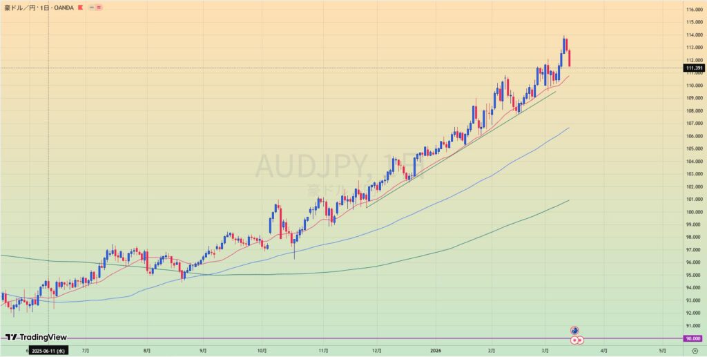 - 円安でどれも同じようなチャートになっているが、新高値上昇トレンド、MA乖離大。