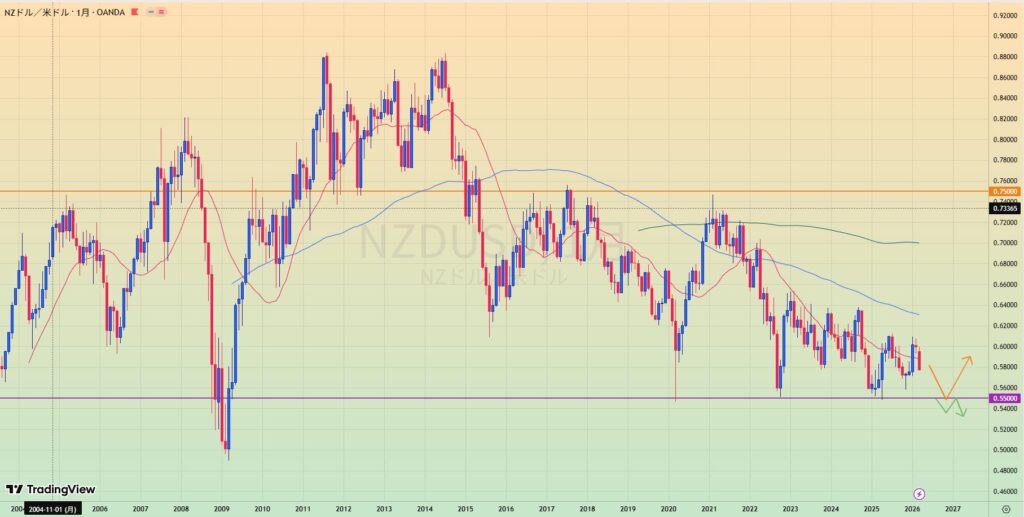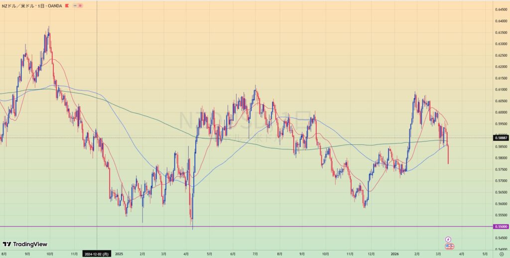 - 0.55水平線を背に下降トレンド中