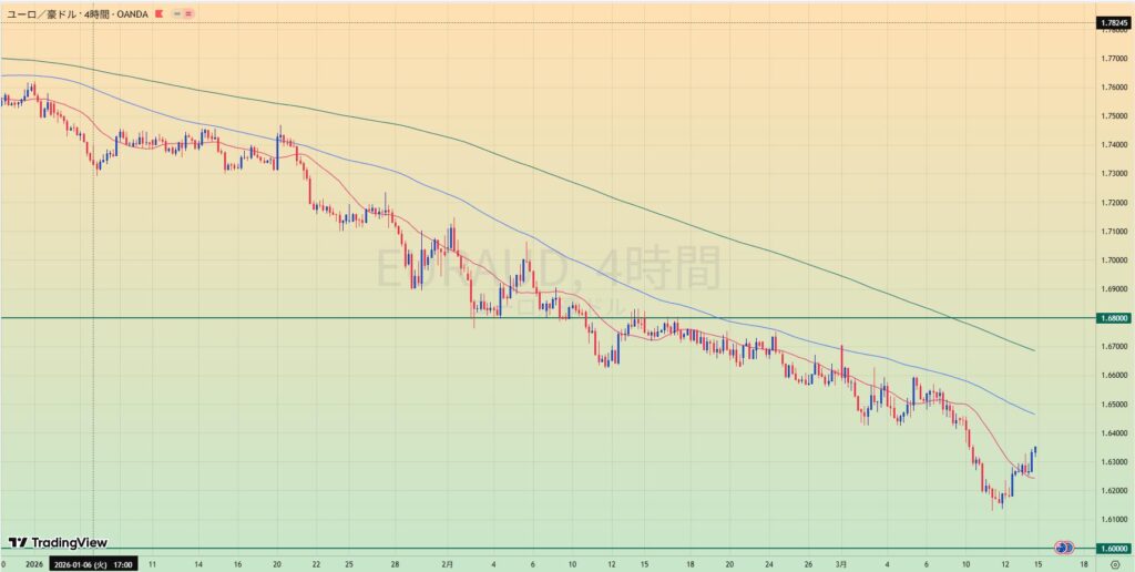 • 1.60の水平線をめぐる攻防だが、レンジ傾向も見える