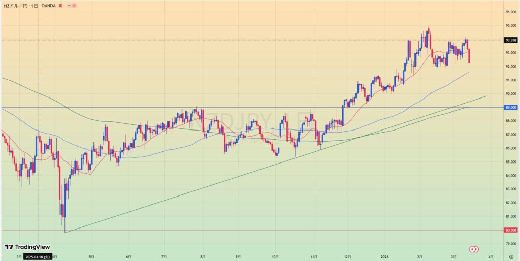 • サポラインと89.0を割り込めば80.0程度までの調整はありえる。