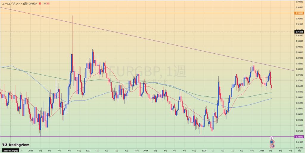 • 0.93と0.82に囲まれたレンジ