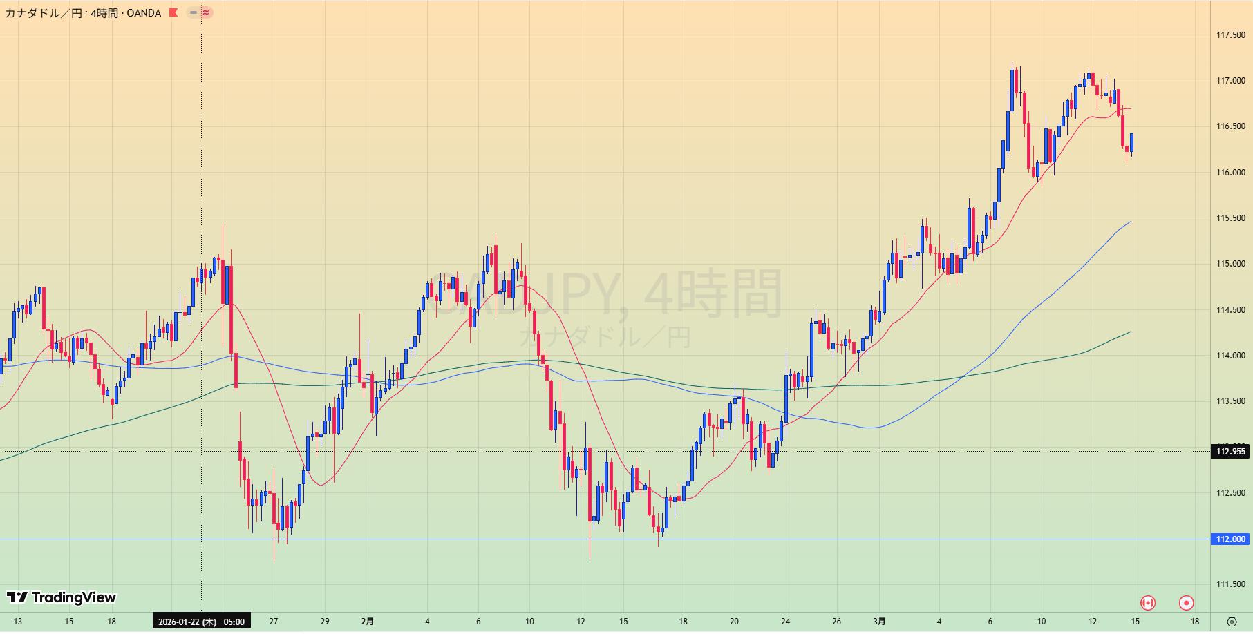 • 高安は切り上げているがレンジ。直近は上昇。
