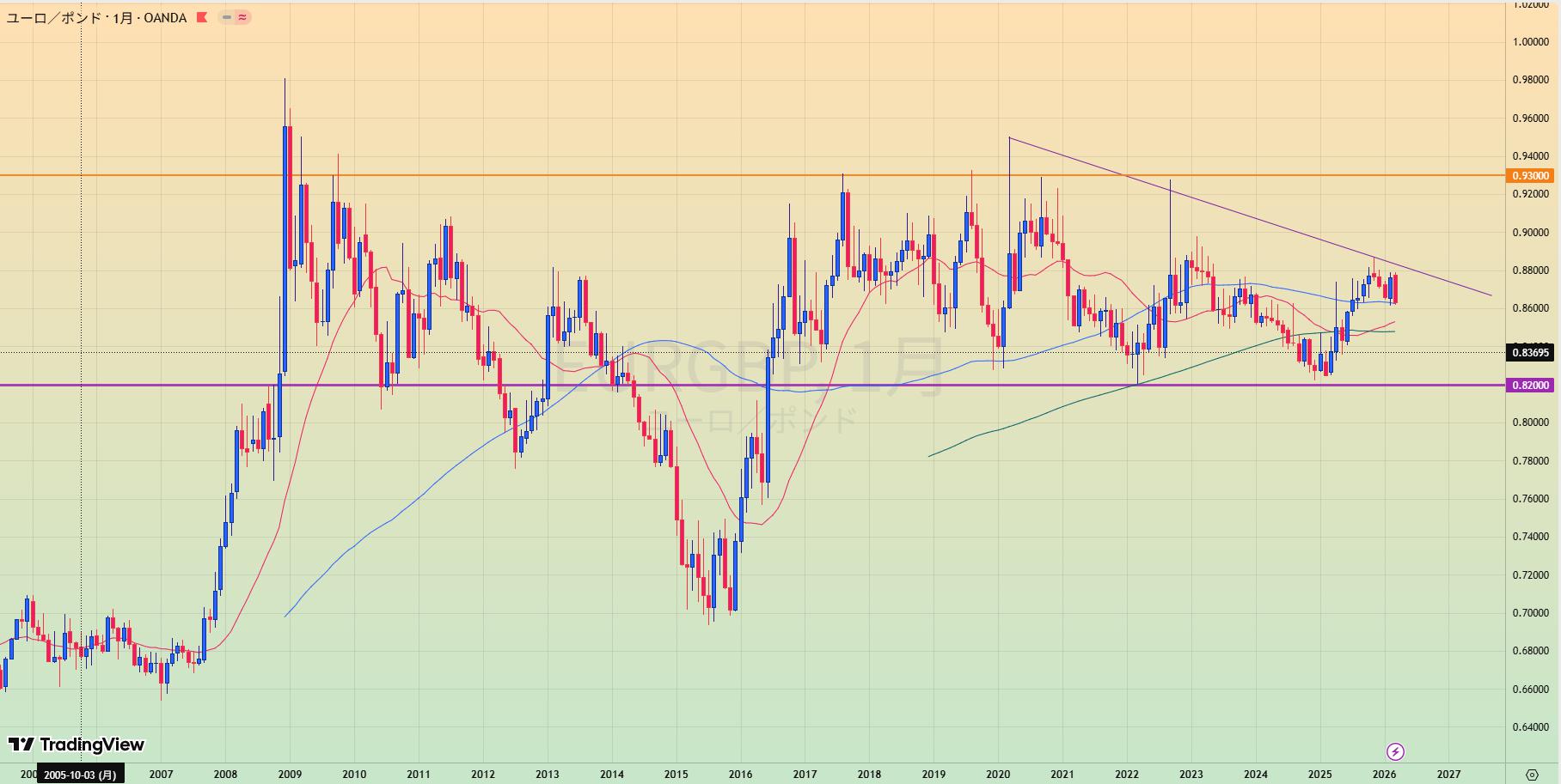 • 0.93と0.82に囲まれたレンジ
