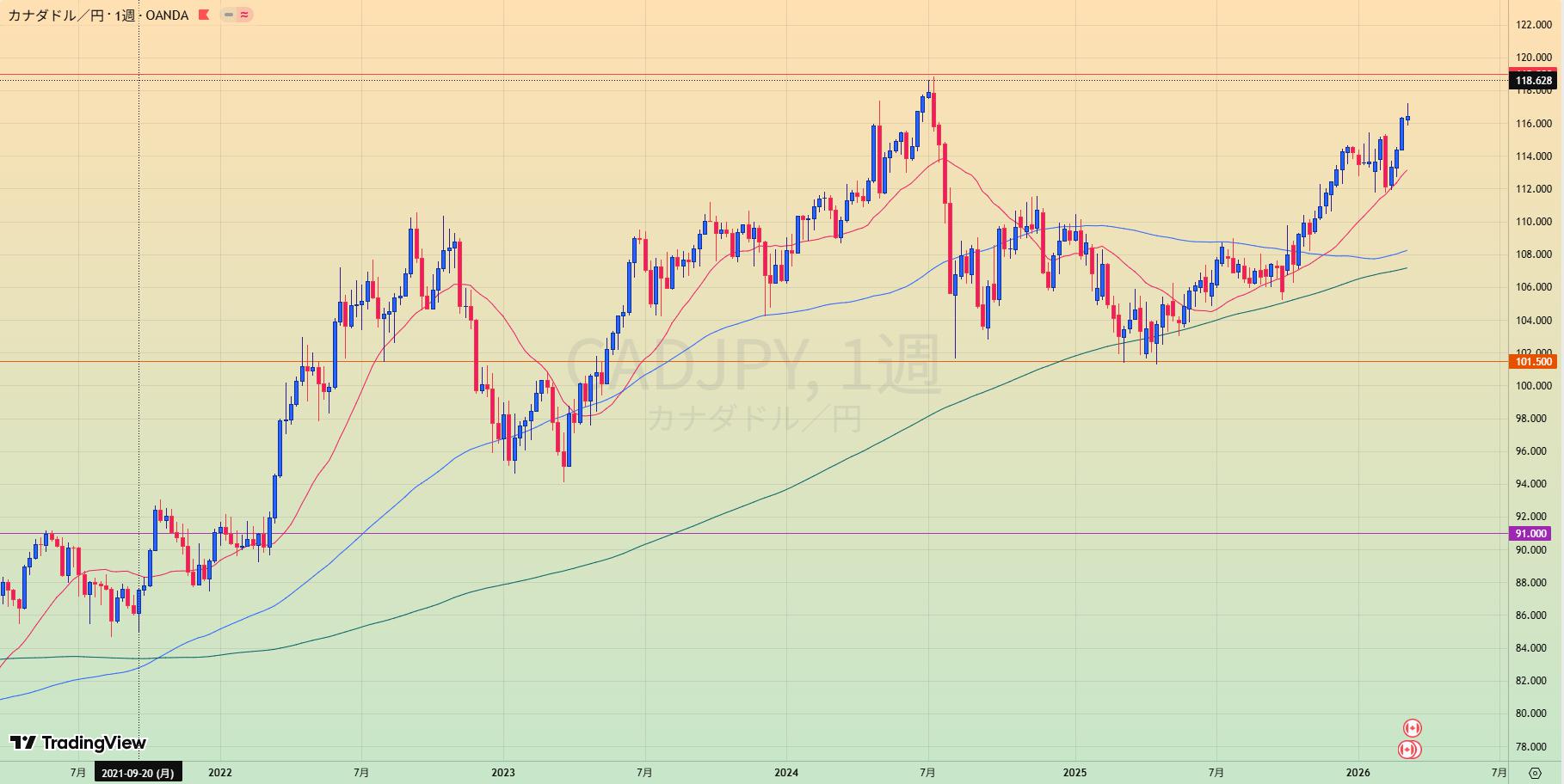 • 101.5辺りがレジサポになっている様子