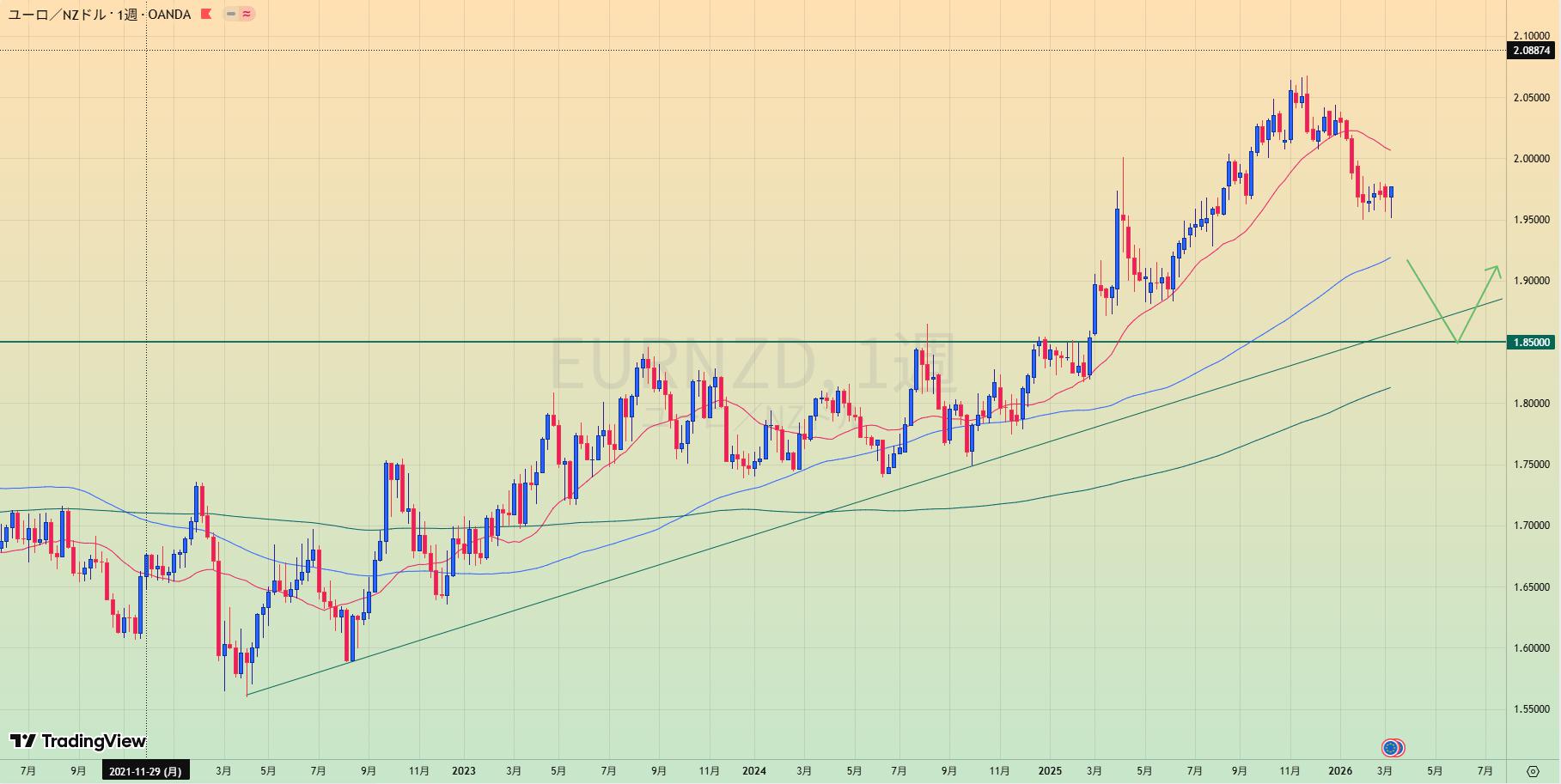 • 1.85へのリテスト待ち。反発を確認するまで待つ。