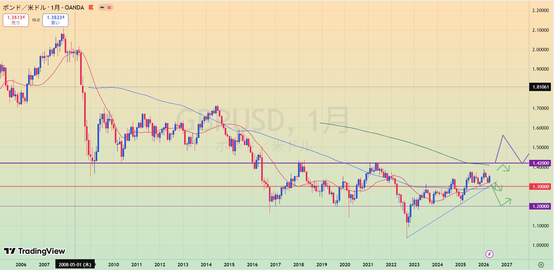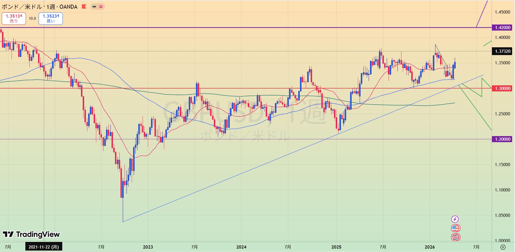 • 1.14下抜けか1.20上レジラインを上抜けてから。