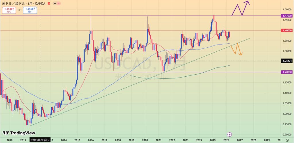 - 3回止められた水平線をブレイクできるのかどうかだけ。