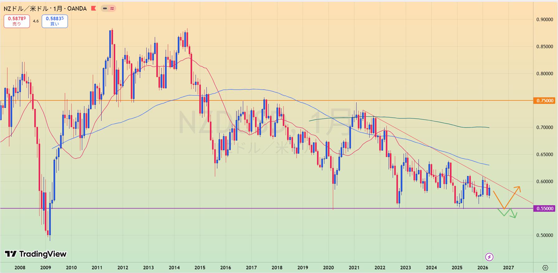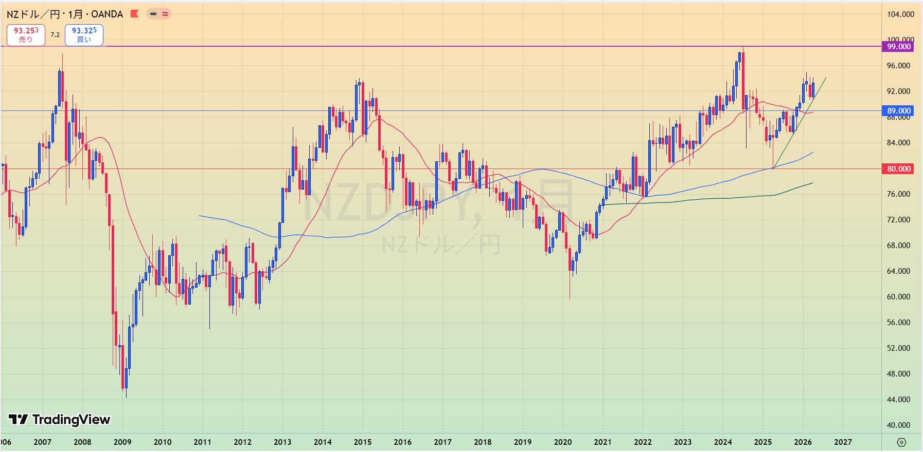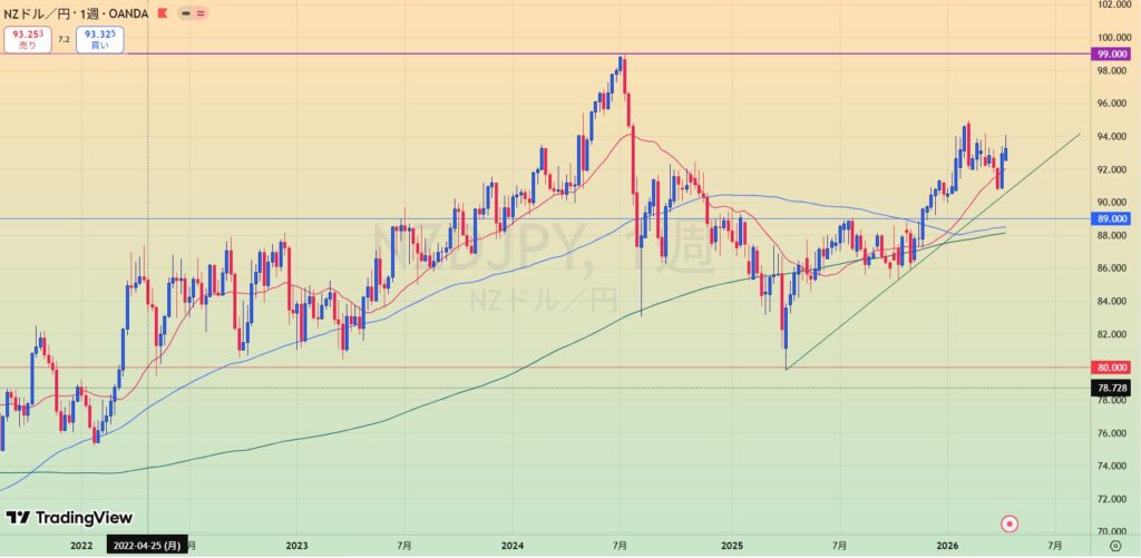 - 99(100)を超えなければトレンドは生まれず、下方向取引は難しそう。