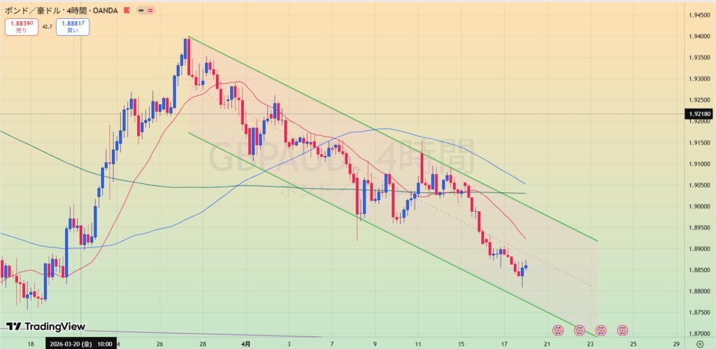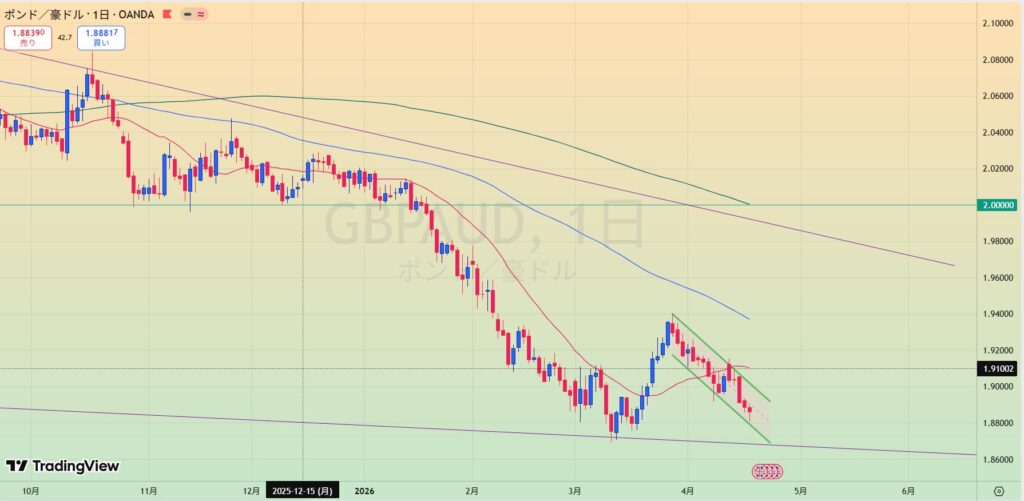 - 上のレジラインを抜ければわかりやすいが、そこまでにはまだ時間が掛かりそう。