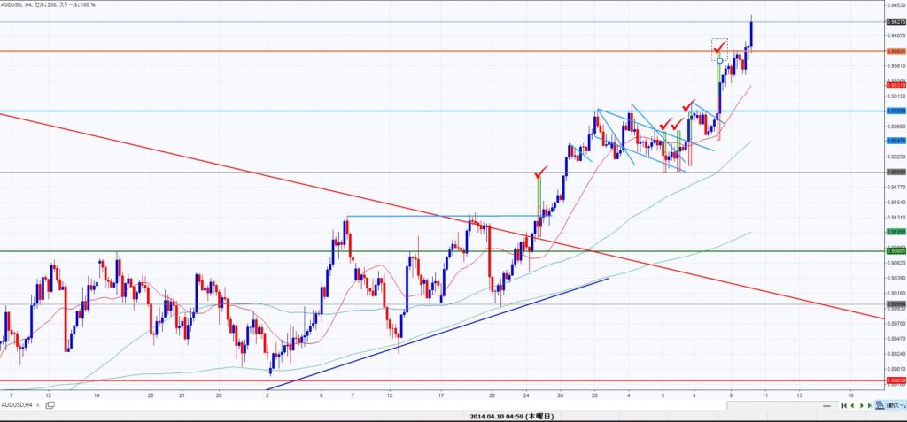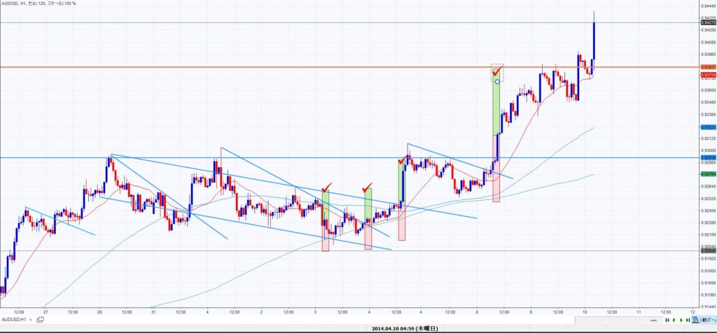 • 結果、順調に上昇して、損切りレベルの押し戻しもなかった