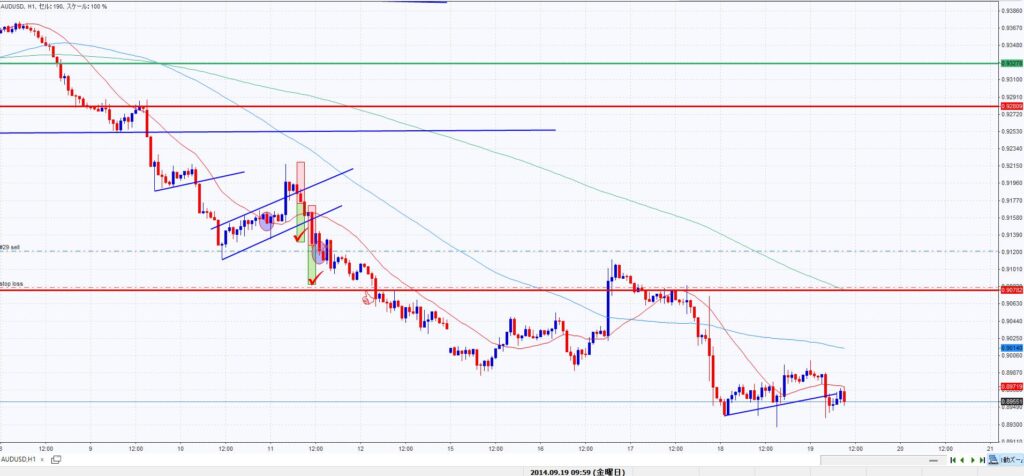 - 下に日足水平線があるがマグネットになってタッチはしそう