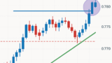 - ポールフラッグチャネル抜けで4Hレベル上昇線も同時抜け(試し玉)