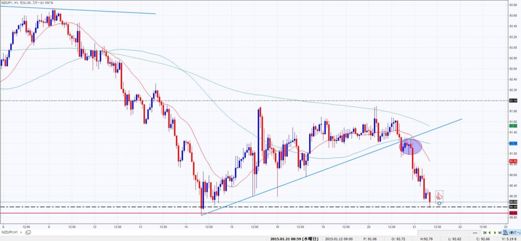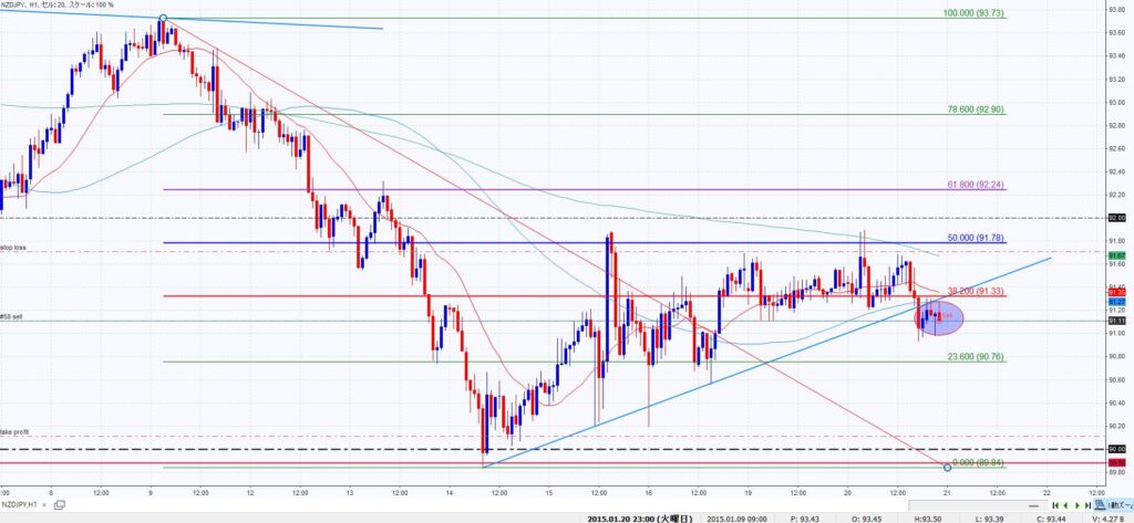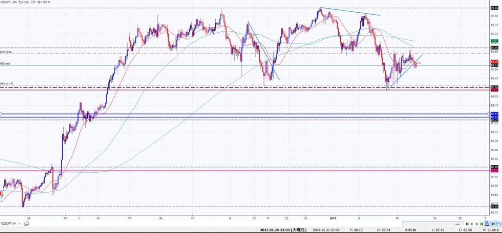 4HでのWトップ認識と、90円のレジサポ帯意識が明確で的確。