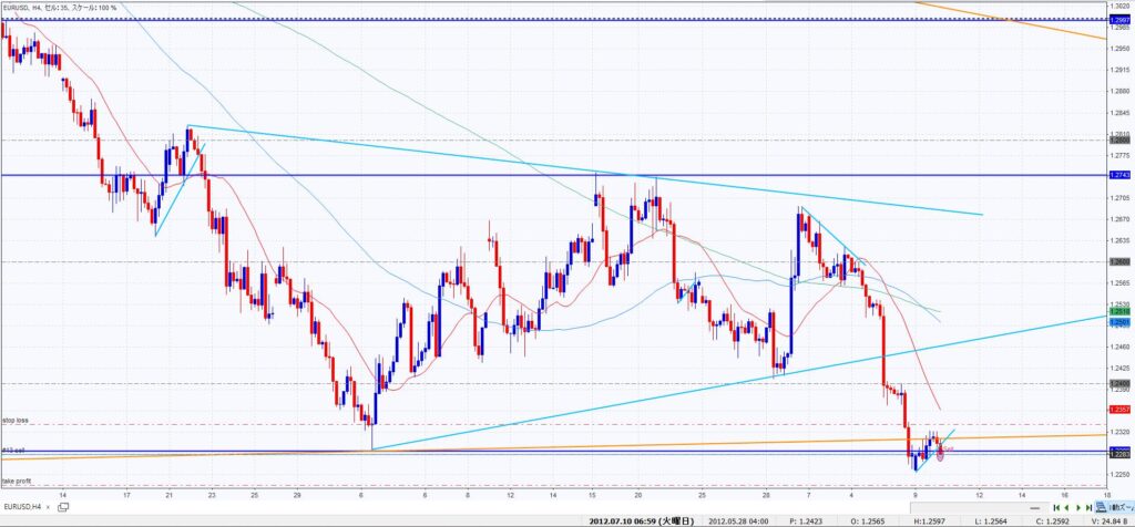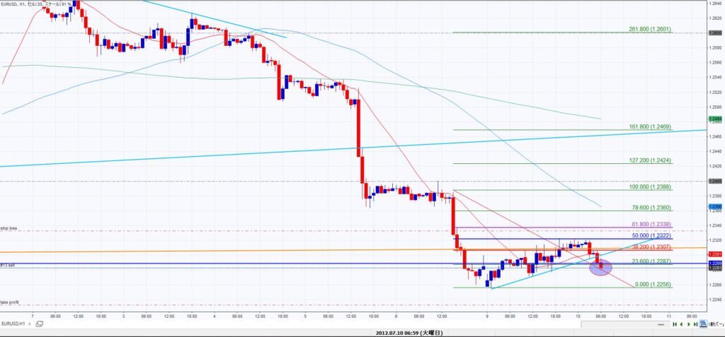 - ライン抜けリテストでPFフィボ50チャネル割れショートエントリー