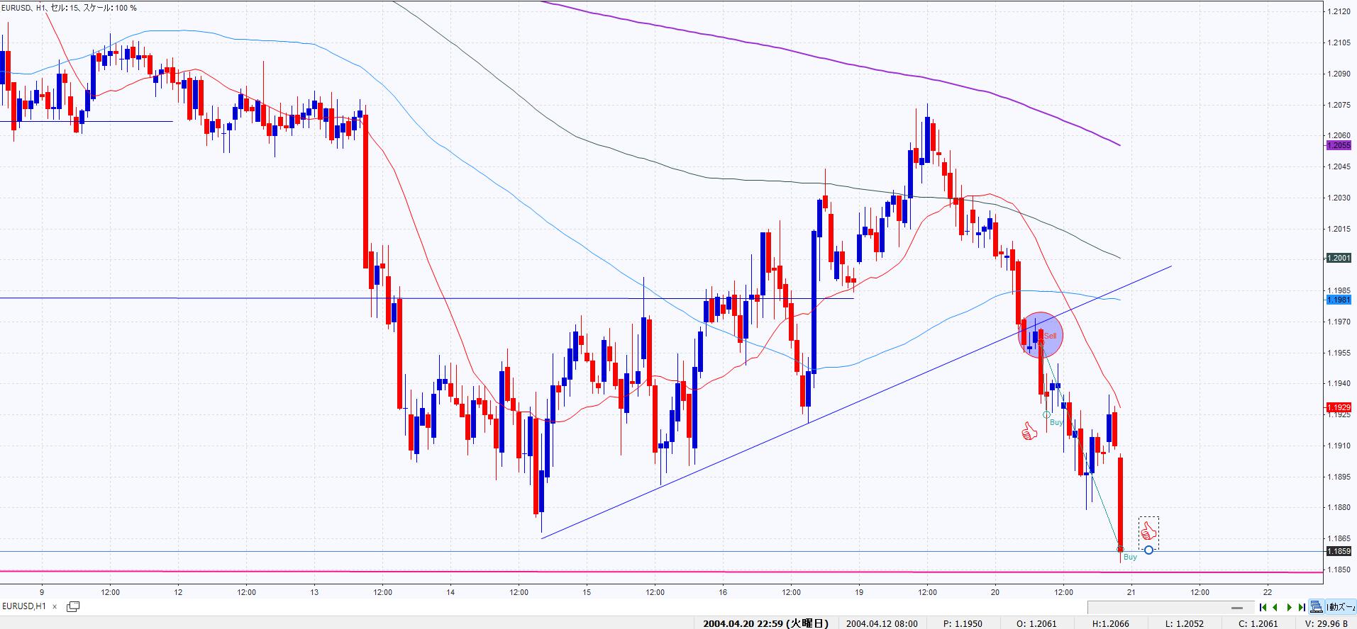 1H基準のリテスト: ユーザー様は「リテストの足が小さく不満」とされていますが、むしろライン際で「大きく戻せない(売りの圧力が強い)」ことの証明でもあります。