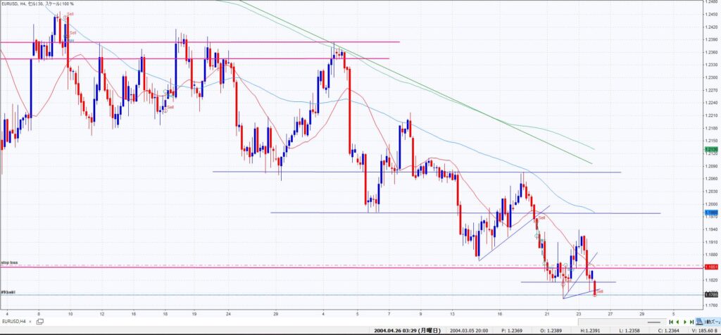 日足・4H足の下降トレンド継続の判断は極めて正確。パワーバランスの把握も良好 2