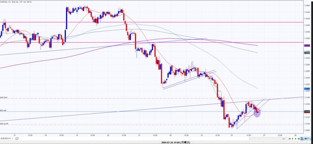 - 前回からの続きで、実戦なら少し玉を残しラインブレイクに追随してる場面だが、今回はプライスアクションがよく、単独でもエントリーしたい場面